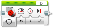 The Large Motor block controls a Large Motor. You can turn a motor on or off, control its power level, or turn the motor on for a specified amount of time or rotation. |
